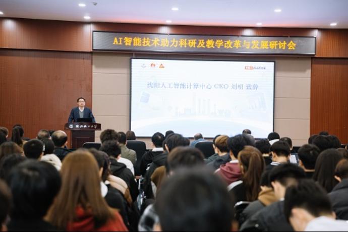 沈阳人工智能计算中心CEO刘明发表嘉宾致辞,他表示计算中心通过引入前沿的技术和体系化的课程赋能省内各大高校进行科研创新,并期待与beat365在线体育官网登录入口深度合作,携手共同探索人工智能+教育的未来之路。