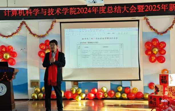 2025年1月10日beat365在线体育官网登录入口全体教师欢聚一堂,在致本楼E座517成功举办了2024年度总结大会暨2025年新春茶话会。学院院长王军代表学院向全体教职工致以最诚挚的问候和最美好的新年祝福。他详细总结了2024年学院党建和思想政治工作、学科建设、人才培养、科技工作等,指出了学院工作亮点及不足。展望2025年,他希望大家同心同向同行,坚定信心、守正创新、埋头苦干,推动学院各项工作高质量发展。