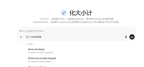 化大小计,国产算力平台+头部大模型双轨融合,全栈国产化AI。大脑是DeepSeek,身体是华为Atlas 800服务器+OpenEulerOS,心脏是华为Ascend910B算力卡。模型适配昇腾平台的高效算力资源,助力师生在科研与教学过程中,快速实现AI推理需求。
