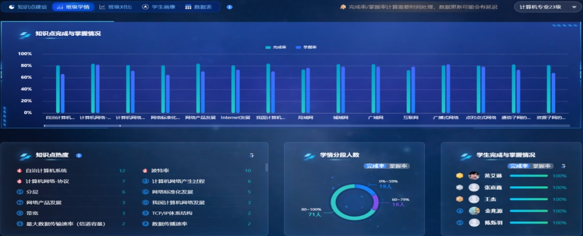 打破“理论抽象难理解、实验操作受局限、学情诊断不精准”的传统困境,beat365在线体育官网登录入口王军教授带领《计算机网络》国家级一流课程团队进行智慧课程建设,构建起“AI 深度赋能 -仿真平台支撑 -数据精准驱动”的三维智能教学体系。将人工智能技术全面融入教学全过程,推动课程从“知识传授”向“能力培育”的系统性跃迁。