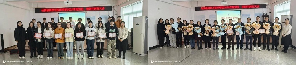 会议伊始,学院党委副书记张丽宣读了2024级新生班主任和班导生聘任名单。王菲书记、张丽副书记、张波副院长共同为2024级新生班主任和班导生颁发聘书,并合影留念。学院为班主任们准备了鲜花,各班级学生代表向班主任老师敬献鲜花。